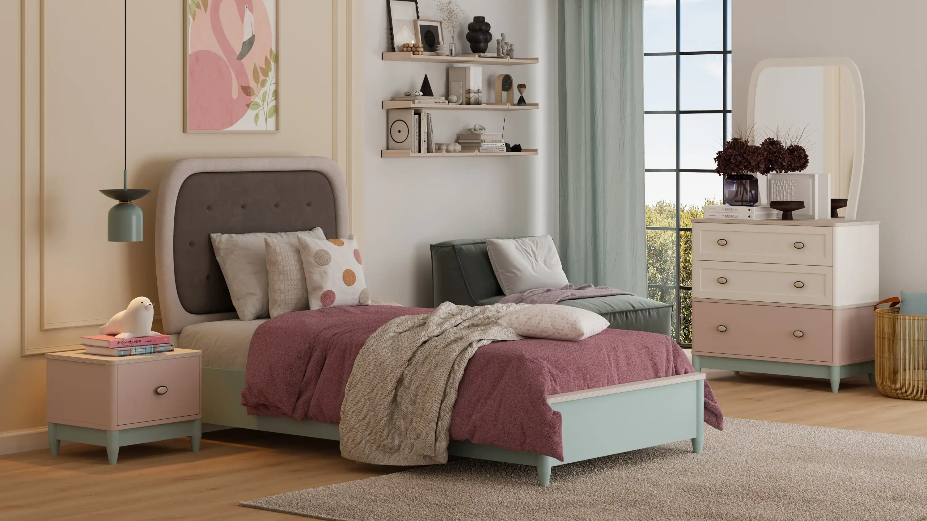 Günlük yaşamda ders çalışma, dinlenme ve depolama ihtiyaçlarını karşılayacak şekilde tasarlanan Love genç odası mobilyaları, sade ve zamansız tasarımıyla uzun yıllar kullanılabilecek bir yapı sunar. Farklı dekorasyon stilleriyle uyum sağlayarak genç odalarında ferah ve dengeli bir atmosfer oluşturur.