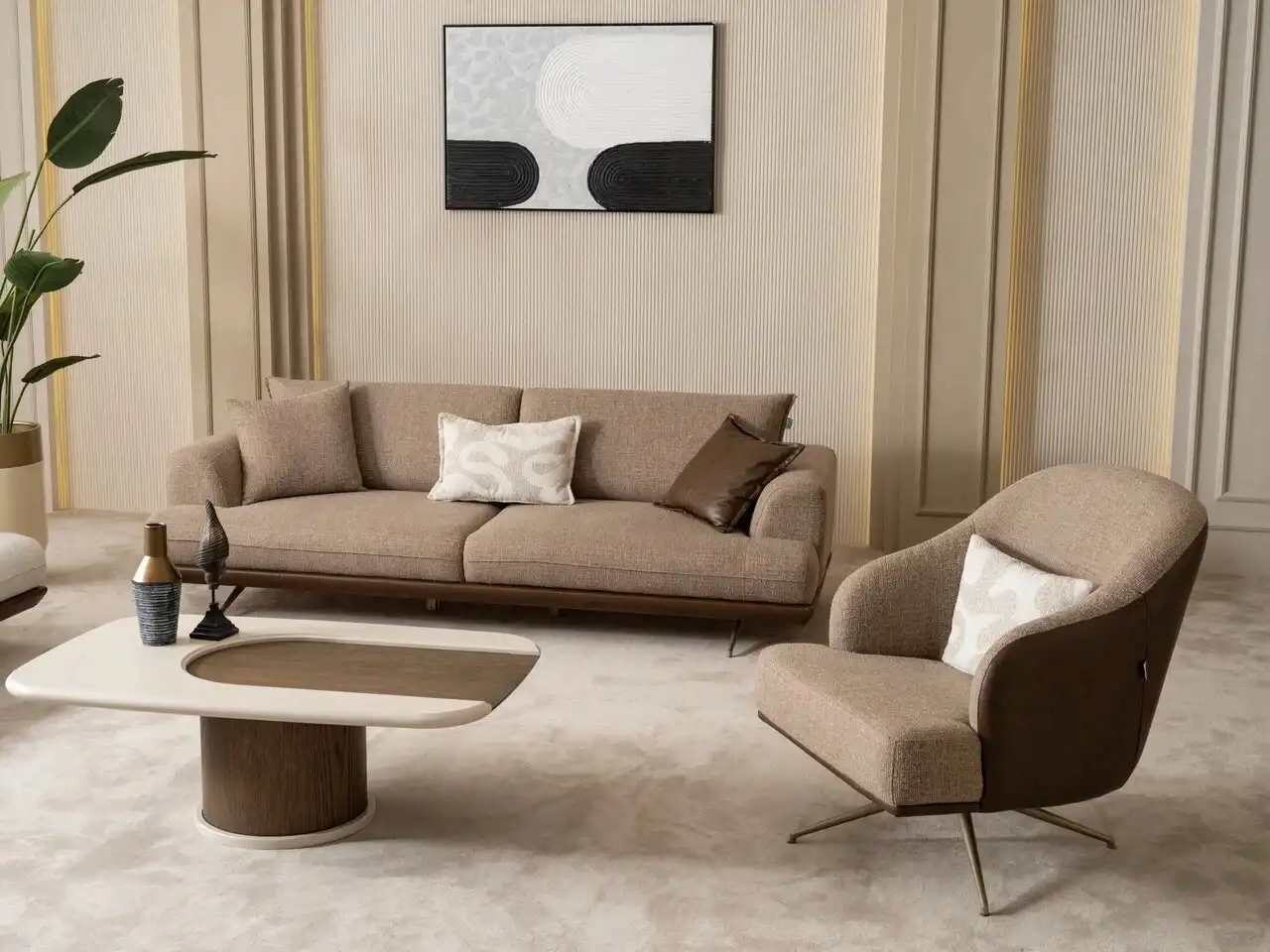 Zarafeti ve modernliği bir araya getiren Sofia Koltuk Takımı, ince hatlı tasarımı ve konforlu yapısıyla yaşam alanlarına şıklık katıyor. Yumuşak oturumlu sünger dolgusu ve ergonomik yapısı sayesinde uzun süreli kullanımda bile rahatlık sunar. Gövde çizgilerindeki modern detaylar, sade ama elegan bir görünüm oluşturur.