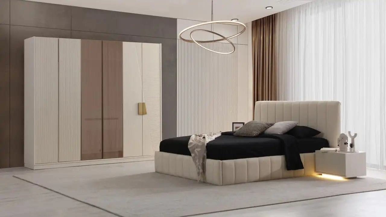 Doğal ahşap dokusunu modern çizgilerle birleştiren Tirilye Yatak Odası Takımı, sıcak ve huzurlu bir atmosfer oluşturmak isteyenler için ideal bir seçenektir. Minimal detayları, soft renk geçişleri ve doğal tonlarıyla hem modern hem rustik dekorasyonlara kolayca uyum sağlar.